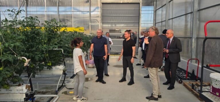Ziyarette, topraksız tarım uygulamalarının KKTC’de uygulanabilirliği ve hangi ürünlerin üretilebileceği konusunda uzmanların bilgisine başvuruldu.